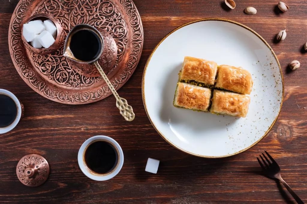 - Baklava: this sweet layered pastry originates in Turkey and is just one of the many examples of Turkish influences to be found in the Balkans. It is made with filo pastry, chopped nuts – most often walnuts in the Balkans, and honey. It is a delicious dessert, snack, or accompaniment to your coffee.